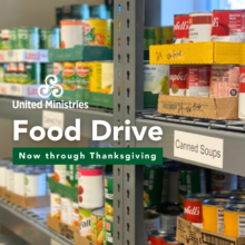 Now through Thanksgiving, we are partnering with United Ministries for a food drive to help stock their pantry to meet a growing need for food assistance.