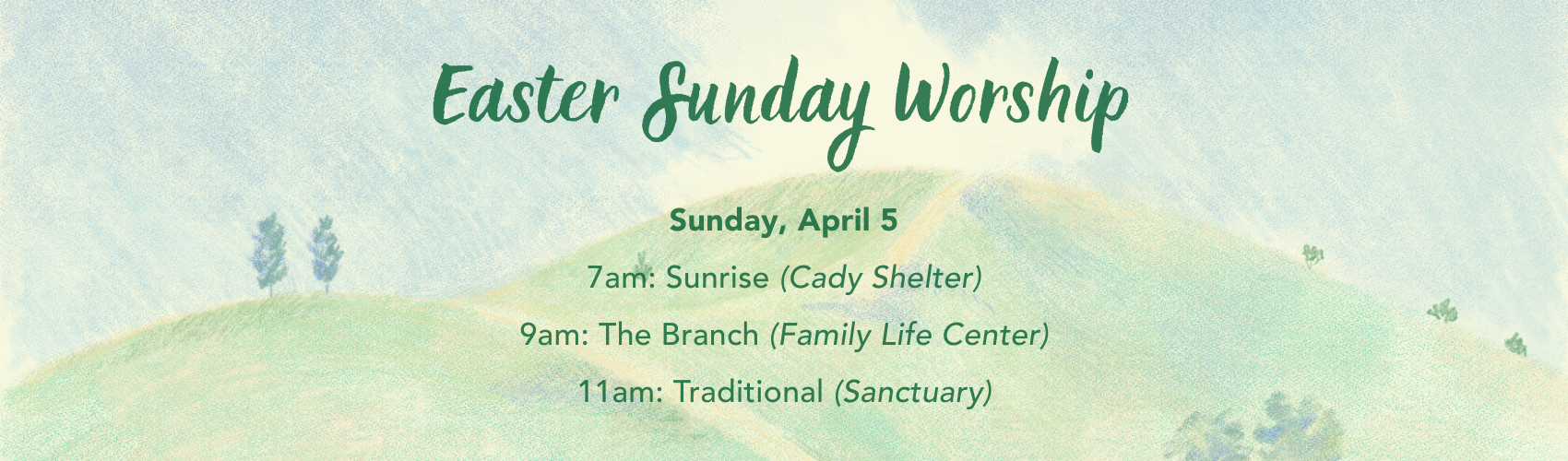 Celebrate Easter with us! Join us for worship at 7am, 9am, or 11am.
